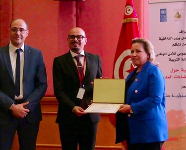Son engagement dans ce programme a été salué par une distinction remise par le Directeur général de la sécurité tunisienne, venant reconnaître la valeur de sa contribution au sein d’une initiative nationale d’envergure.
